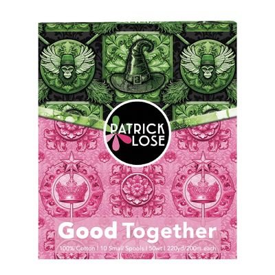 Yes, pink goes good with green—and this thread collection proves it in the most magical way! Inspired by Patrick Lose’s GOOD TOGETHER fabric line, this 10-spool Aurifil set is a whimsical celebration ofunexpected harmony. Each 50wt cotton spool hasbeen handpicked to coordinate seamlessly with Patrick’s enchanting prints—delicate florals, playful crowns and wands, winged monkeys, witch hats, and soaring broomsticks. Whether you’re cheering for Glinda or rooting for Elphaba, these sweet pinks and vivid greens dance together in perfect sync, ready toadd a bold, theatrical flourish to every stitch. 100% Cotton | 10 Small Spools | 50wt: 2692, 2892, 1114, 6737, 3320, 4660, 4020, 2430, 2423, 2021.