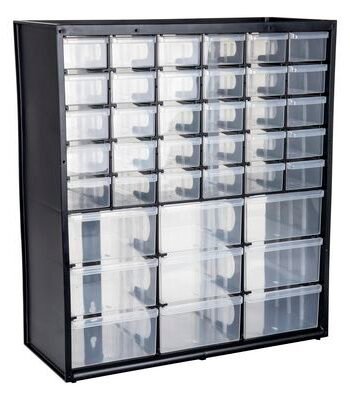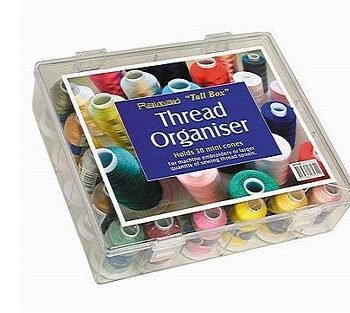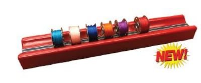 RED plastic bobbin rack magnetically holds up to 16 steel bobbins tightly on edge showing thread colors. Bobbins not included.