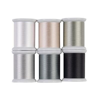 Kimono Silk is a 100 wt. 2-ply filament silk thread that is as smooth as thread gets. Its fine, lint-free nature allows for smooth stitching whether you are quilting on home or longarm machine, binding your quilt, or stitching an applique project. Our second Kimono Silk Neutrals Collection veers lighter than the orginal consisting of the following six colors, 1 spool each: 373 White Rice, 375 Zen Zen, 378 African Gray, 377 Ginza, 379 Castle Gray, 380 Black Belt Set of 6 220 yd. spools / 1,320yds total.