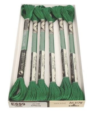 Specialty thread which add light and reflective qualities to stitching. Ideal for all types of needlework projects. The six strand skeins have the same thickness and yardage as DMC floss, and the numbering system is the same as well. Just add an E to the front of your favorite floss color.