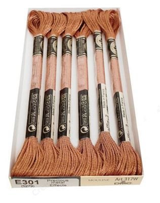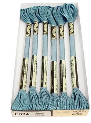 Specialty thread which add light and reflective qualities to stitching. Ideal for all types of needlework projects. The six strand skeins have the same thickness and yardage as DMC floss, and the numbering system is the same as well. Just add an E to the front of your favorite floss color.