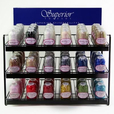 The MasterPiece cone display consists of the most popular 18 colors x 5 cones each of MasterPiece 50 wt. 3-ply cotton thread. MasterPiece is a strong, low-lint cotton thread made from Egyptian-grown extra-long staple cotton. MasterPiece is designed for piecing, quilting and sewing. Each cone is wound with 2,500 yds. The fixture is a welded metal rack that fits 72 cones total (6 slots x 3 rows x 4 cones) and conveniently sits on any table or countertop. The metal fixture measures: 22in wide x 21in tall x 11.5in deep. **Map Pricing**$26.99 per spool. This item is subject to a Minimum Advertised Pricing Policy (MAP price listed) Full Brewer MAP policy details are available for review on our website under the Shop Resource tab.**FREIGHT INTENSIVE** **Dropship** Freight Intensive items are non- returnable. dimensional weight compared to the actual weight. In addition to transportation charges, freight carriers may assess an additional oversize charge per package.