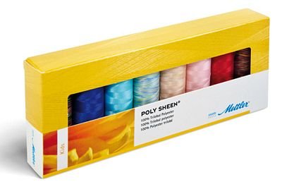 Consists of 4 spools of Mettler Polysheen Plus art#4820-. 218yds per spool. Colors included:9937, 9936, 9935, 9938. Also contains 4 spools of Mettler Polysheen Embroidery art#3406-. 220yds per spool. Colors included:3544, 4240, 2160, 1902.