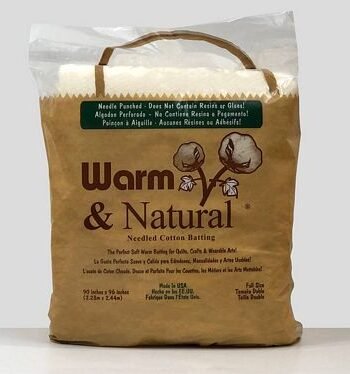 Premium Natural Un bleached Cotton with scrim. Idea for machine or hand quilting up to 10″ apart. Made with long staple cotton, no chemicals or bleached added. This natural batting will shrink less that 5%, it is recommended to hand wash before using . If prewashing is not desired, wash your quilt once that its finished, this will give you the perfect look. Size : 120″x 120″ King