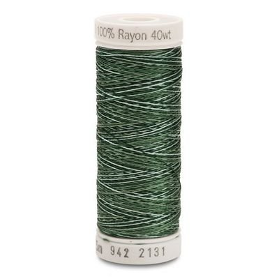 Light weight, but exceptionally strong, silky rayon thread. Good for machine quilting, applique and free-motion machine embroidery. Color-fast. Machine needle size most commonly recommended: 12/80. Can also be used as a bobbin thread with 30 wt as the top thread. Available in 36 Variegated and 18 multi color combinations. 250yd per spool, 3 spool per box.