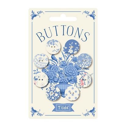 The Something Blue Collection Buttons LIGHT includes 8 buttons 3/4 in (20mm) fabric covered buttons. Inspired by her lifelong love of blue and white pottery, designer Tone Finnanger brings timeless elegance to Tilda Fabric”s Special Edition Collection – Something Blue. This beautiful collection features 15 coordinated patterns, combining classic Tilda florals with fresh, new designs offered in dark-on-light and light-on-dark colorways. Something Blue Blenders include small florals, border stripes, quilt labels, and ornaments, making it ideal for creating stunning quilts, pillows, decorative accents, and more. The collection also introduces a quilted jacket pattern and a fat eighth appliqué flower bundle, perfect for adding floral flair to your projects. The coordinating Poppy Seed basics in earthy pastel tones make excellent backgrounds for the crisp blues and whites of the main collection. **43/44 inches OEKO-TEX® Class 1 Certified100% high-quality cotton. ** ALSO AVAILABLE: Individual Bolts and Collection Case Pack: 20-bolt case (11-yard or 15-yard bolts ) Blender Case Pack: 12-bolt case (11-yard or 15-yard bolts) **This item has a Minimum Advertising Price of $12.50 per yard retail enforced** **No pre-sales or images can be released to the public until the official release date of April 15, 2026. Shipping begins mid-May 2026. Worldwide In-Store Release: June 1, 2026** **Applicable tariffs have been included in price for PRE-CUTS and BUTTONS**