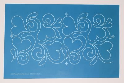 Approx. 8 in x 15 in This pattern is easy, connects well, looks great and will cover your quilt with a splash of love. Use it on the next quilt you make for someone you love! The registration marks make aligning repeats and rows easy! (C) 2020 Anne Bright Full Line Stencils are transferred with a Quilt Pounce Pad (TM) and because the material is a nylon mesh open only on the lines of the design, the powder goes right through to the quilt top! Full Line Stencils all work the same, there is no right or wrong side, you just position, swipe the Pounce pad over the top, lift off and sew! There are no breaks or bridges to fill in, no mess, and it’s easy, fun, and effortless to transfer the beautiful designs onto your quilt tops.