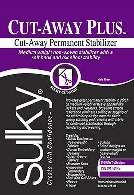 Another Printable Water Soluble! Works just the same as Fabri-Solvy only it has a self-stick back, which is accessed by removing a release sheet. It”s like magic for turned applique Stitch it, turn it, and stick it. It holds items in place for hoopless and reversible embroidery. Ideal for accurate placement of loose items when making scarves or thread collages. Photocopy designs onto it, then peel off the release sheet and stick the design in place for Hand Embroidery, Applique, Punchneedle, Machine and Hand Quilting. With no paper component, it washes away quickly and completely every time! For photocopying convenience, it also comes in 8-1/2″ x 11″ sheets.