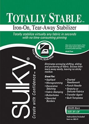 Totally stabilizes any fabric in seconds with no time consuming pinning. Eliminates annoying shifting, sliding and puckering of your fabric. Just iron it on. Excess tears leaving no sticky residue.