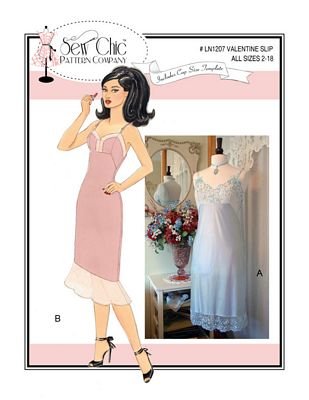 Feel beautiful under everything you wear in these two feminine slip styles described as “full” for modesty both on top and bottom. Both have princess bodice seams, and use ribbon and lingerie slides and rings or purchased straps. The view A bodice, back inset, and skirt trim is cut from wide lace with a scalloped edge and 2 ribbon bow accents. View B bodice has a contrast fabric trim and skirt ruffle. Both lengths are just below the knee. Pattern includes a template and step by step instructions to make altering for cup size a breeze!