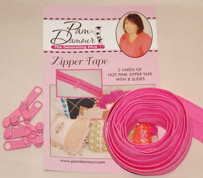 This amazing zipper tape comes in a continuous 3 yard piece with eight slides so you can cut off just what you need. Because it”s designed for the home decorating industry, you can use it for all your pillows duvets slipcovers luggage backpacks purses & more. 3 yards available in various colors. Comes with 8 slides. Pam Damour